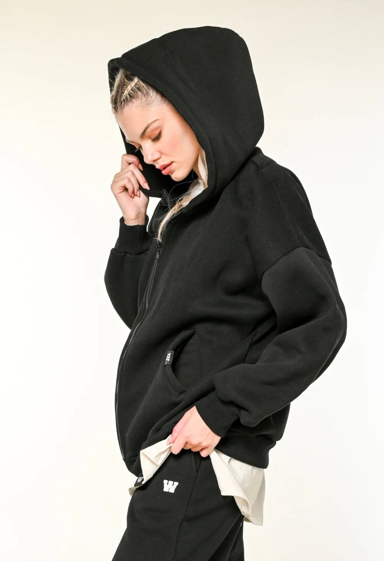 W black hoodie jacket